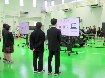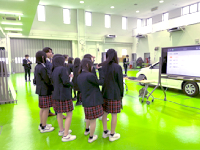 令和6年3月5日(火)豊田大谷高等学校の就職を希望する2年生74名の学生に小牧教育センターへ来ていただき、自動車整備の仕事について学んでいただきました。 スキャンツールを使った整備や先進安全自動車に搭載されているミリ波レーダや、カメラのエーミング作業など、最新の自動車整備技術について見学していただき、見学後のアンケートでは、「高い技術力を持っている職業だと思った」など非常にいい意見をいただきました。