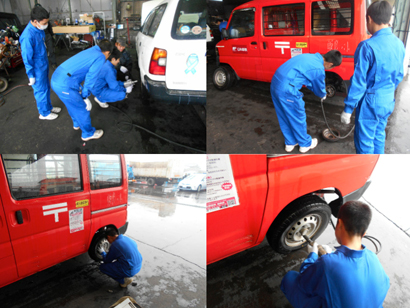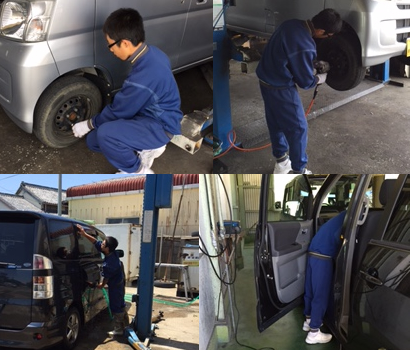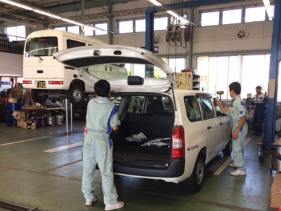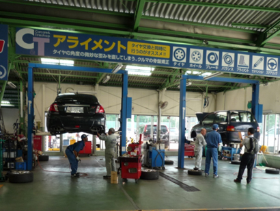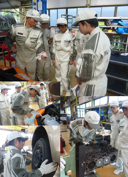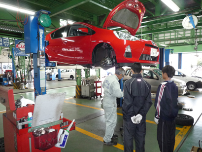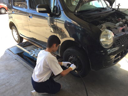 春日井市の「株式会社ウエダ」様では、愛知県立春日井工業高校の自動車整備に興味のある生徒を7月19日、4名受け入れました。 初めに自動車整備工場の業務内容や検査機器等の設備についての説明を受け、マイカーハンドブックを使い自動車の構造や点検項目について学んだ後、生徒一人ひとりに整備士が付きマンツーマンで実習を行いました。実習では車両をリフトアップし、足回りの点検や、ブレーキの点検整備を詳しく学ぶことができました。 職場体験を終えた生徒は、一日楽しく作業できたと、大変充実した一日を過ごすことができました。 代表取締役の立磨敏行様は、15年前から中学校と工業高校の職場体験を積極的に受け入れ、若者が自動車整備に関心を持てる様に取り組んでいます。