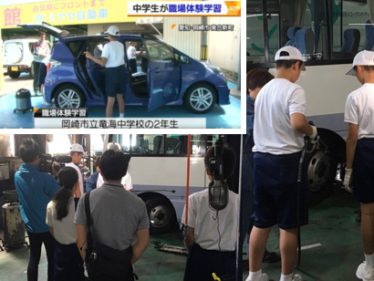 知立市の「三宅自動車」様では、知立市立南中学校・竜北中学校の自動車整備に興味のある生徒を10月18日~20日の3日間にわたり受け入れました。 まず、お客様への挨拶の仕方など、社会人に必要とされる常識や、チラシ・サービス券の制作など自動車整備以外の作業も行い、整備士には様々な仕事がある事を学びました。 その後は、洗車や工場にある代車を使ってタイヤ交換といった作業の体験や、プロの整備士がどの様に作業を行うのか見学しました。更に、整備を終えた車が西三河の車検場でどの様に検査されるのかまで見学し、車検の流れを学びました。