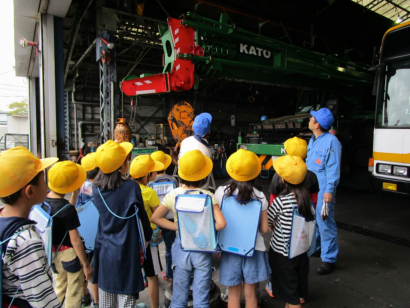 名古屋市緑区の「名鉄自動車整備株式会社」様では10月6日、名古屋市立平子小学校で行っている生活科の授業、町たんけんの一環として、2年生の生徒10名を同社鳴海工場に受け入れました。 生徒たちは、車検工場や板金工場を見学する中で「自動車はリフトで持ち上げて点検をする」、「車のお医者さんのような仕事」等、整備士の仕事についての説明を受けながら、バスの下回り検査や、トラックのブレーキを分解整備している様子を見学しました。その他にも、クレーン車が動いている様子やトラックのキャビンが上がっている様子を見学し、普段見る機会の少ない車両や大型車両の部品の大きさ等、名鉄自動車整備様ならではの見学内容にとても驚いていました。 工場見学の後、「難しいのはどんな仕事ですか?」「女の人も働いていますか?」等、たくさんの質問がありました。 職場見学を担当している総務部の中澤様は、「この取り組みによって自動車に触れることで、少しでも興味を持ってもらい、整備士を目指すきっかけとなり、将来一緒に仕事をすることができたら嬉しい」と、生徒たちが自動車整備に興味を持てるよう、積極的に職場見学に取り組んでいます。