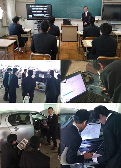 愛知県立加茂丘高等学校において3月15日生徒が将来を考える上で重要となる「進路ガイダンス」の職業別体験授業で講習をさせていただきました。 当日は「自動車整備士について」のテーメにて、自動車関連産業の紹介、自動車整備士資格、点検・整備などの仕事内容、自動車整備士として大切な事を講演させていただき自動車整備業界の事を知っていただきました。