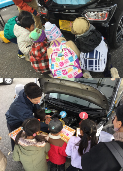 愛知自動車整備人材確保・育成連絡会では、児童を対象にクルマと整備の仕事に興味をもってもらうことを目的とした体験イベントを実施しており、平成29年12月17日(日)、岡崎支部協力のもと岡崎モーターフェスティバルに参画し、「こども整備士自動車てんけん教室」を開催しました。 当日は150名の子供たちが参加し、エンジンルーム、タイヤ、灯火類の構造確認や燃料電池自動車の模型を使い最新の技術を楽しく勉強しました。 また、大人が対象の「マイカー点検教室」も同時開催し、親子そろって自動車について学んでもらうとともに、自動車整備士のアピールを行いました。