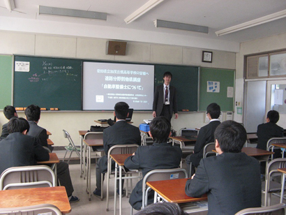 愛知県立渥美農業高等学校において3月16日、職業別ガイダンスで車体整備士として講習をさせていただきました。 具体的な仕事内容から現状と今後の展望や就職状況などを交え、必要な知識・資格・適性など求められる人材について講演させていただき、自動車整備業界の事を知っていただきました。