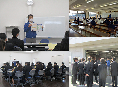令和2年11月19日、栄徳高等学校(長久手市)での「職業別説明会」に参加し整備士として働くための道のりや仕事内容、整備の楽しさなどについてパワーポイント資料などを用いて多くの生徒に伝えました。