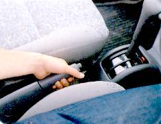 パーキング・ブレーキ・レバーをいっぱいに引いたとき、引きしろが多すぎたり、少なすぎたりしないかを点検します。 |